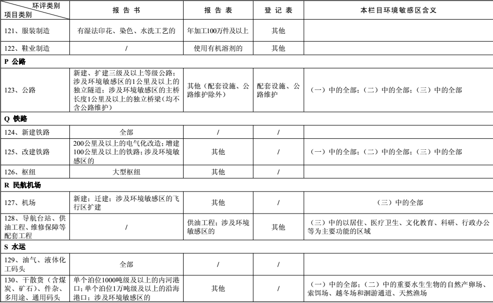 建設(shè)項目環(huán)境影響評價分類管理名錄